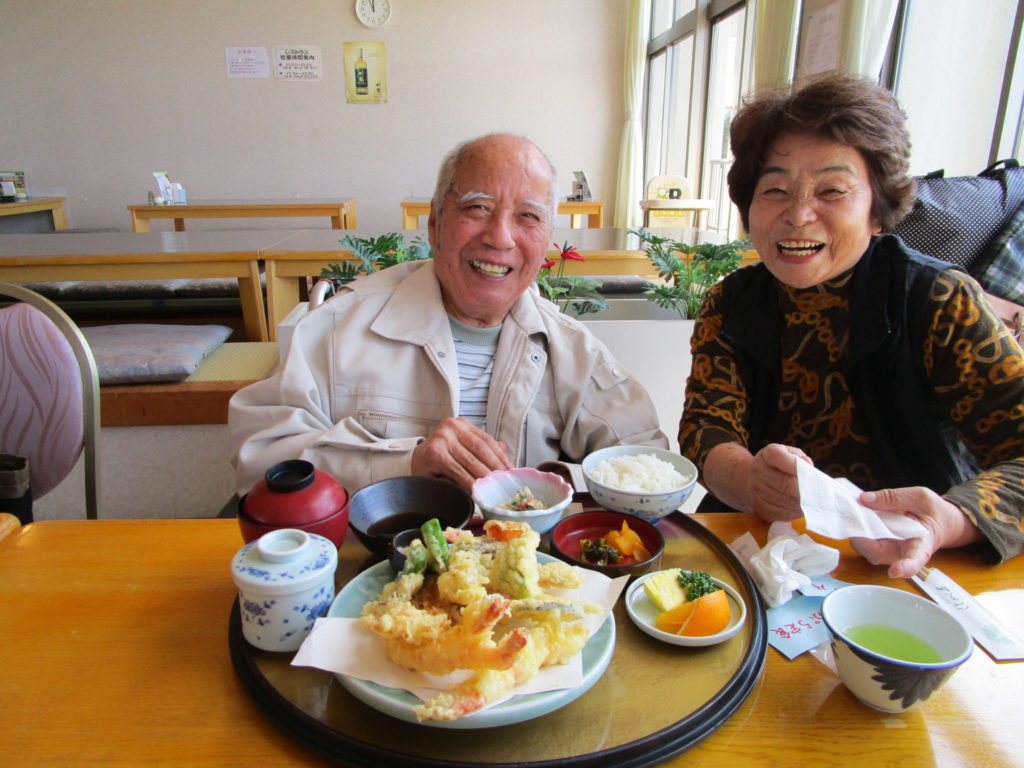 奥様と一緒に少し照れながらも満面の笑み( ^^) 。天ぷら定食を堪能されました。