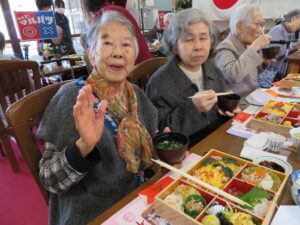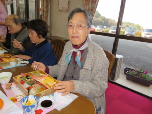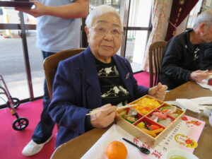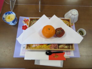 もちろん昨日入居者様にお手伝いいただきました、芋きんとん、田作りも入っています。