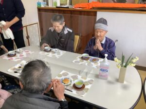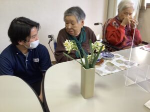 食べ終わると、「あの人は元気かね~、何歳かね?」と職員や隣の方とおしゃべりしたり、「何度嗅いでも良い匂い😊」と水仙の香りを楽しんだりとゆっくりとした時間を過ごしました(*^^*)