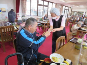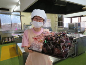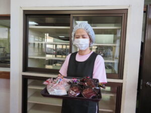 調理員さんより、男性入居者様に手作りのチョコクッキー、バタークッキーを