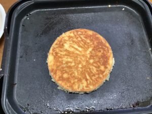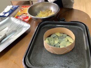 煮詰めたリンゴを敷き生地を流して焼きます。焼きあがったら切り分けて粉糖を掛けました。