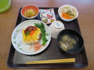3/3(金)本日は、雛祭りです。昼食は、行事食で雛寿司でした🍣