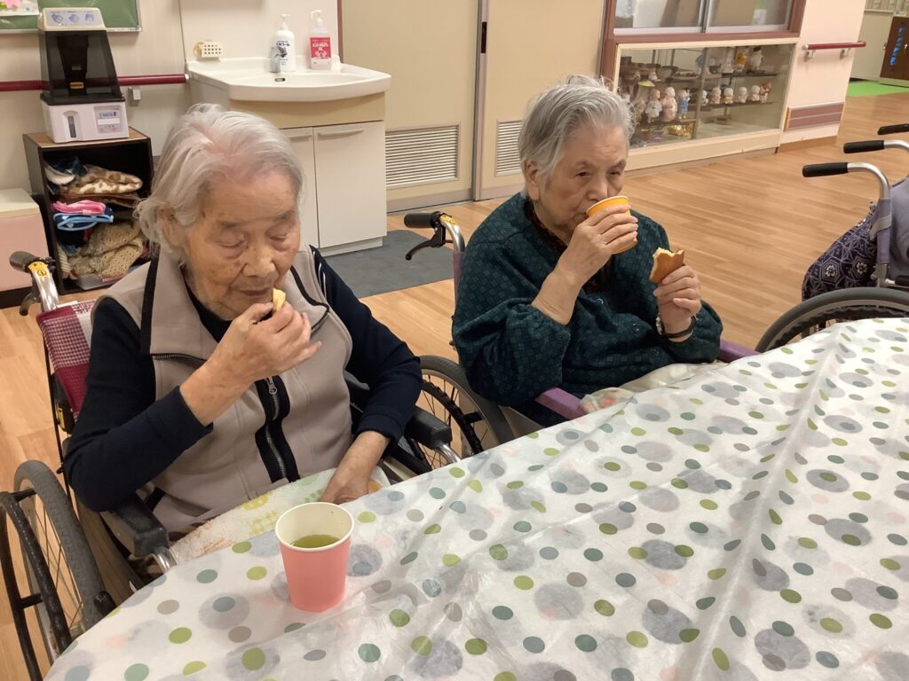 「花見もしておやつも食べて満足!満足!」「佐賀の丸ぼうろは美味しいとよ」と楽しくお話を