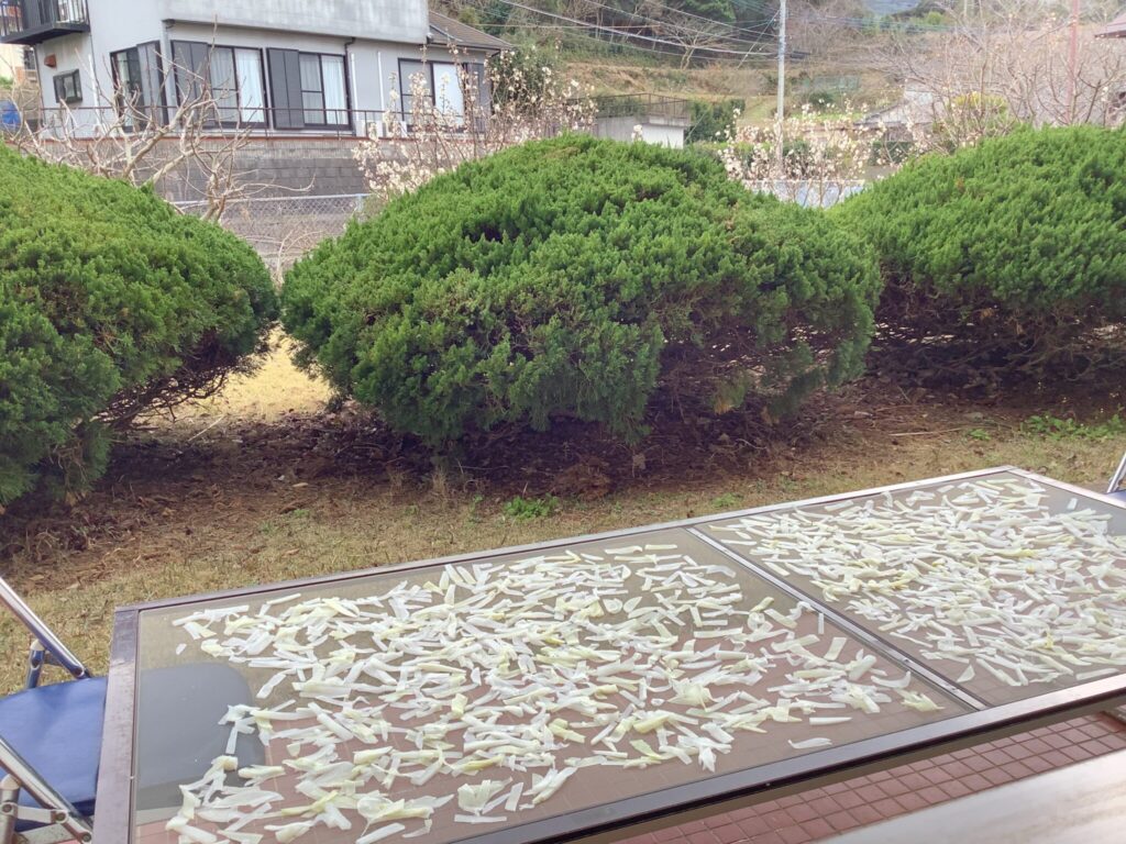 一度さっと茹でてから天日干しにします。天日に干すと甘みが増すような気がします。