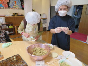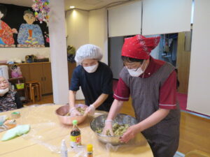本日の料理は「手作り餃子作り」です。2班に分かれ行いました🎵