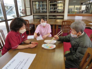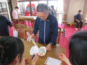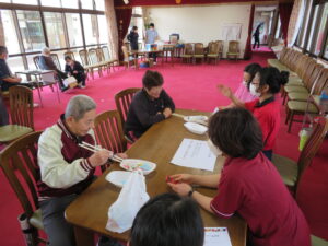 長い菜箸なのでつかみにくいのですが、皆様上手に箸を使われていらっしゃいました🎵