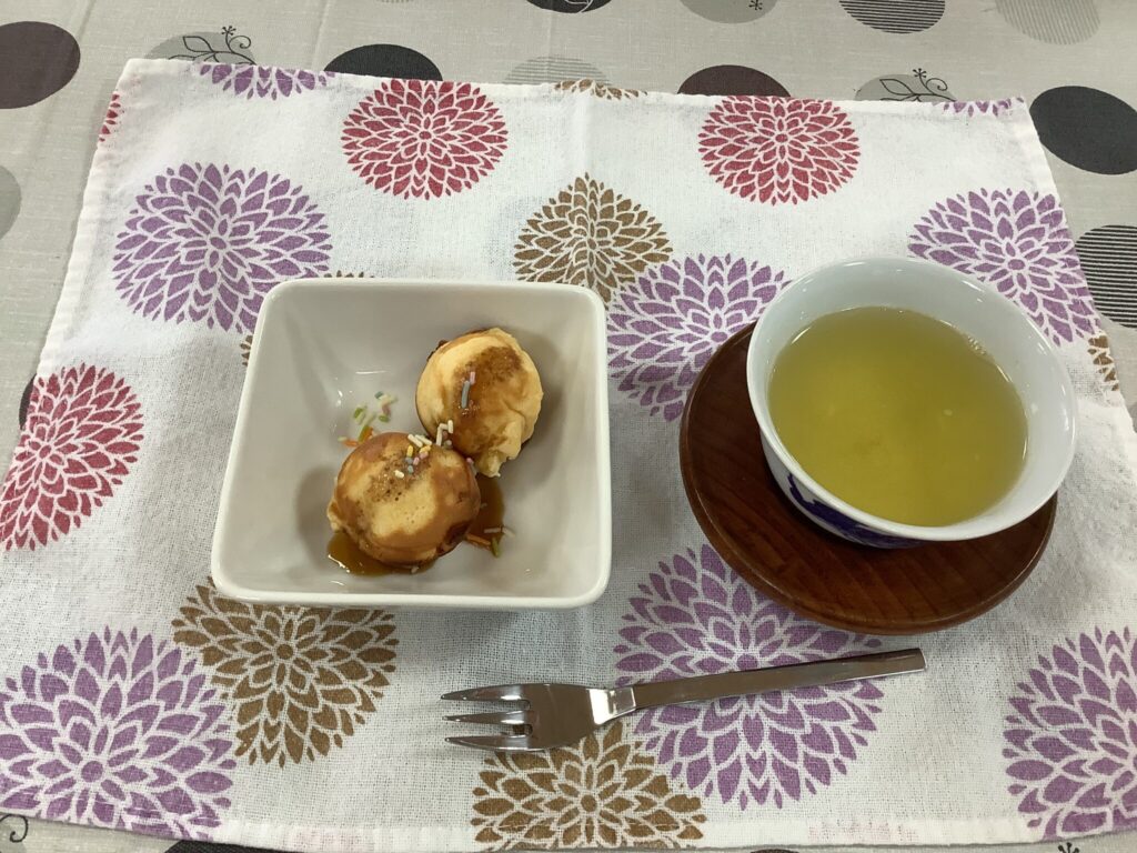 飲み物は温かいほうじ茶を準備致しました🍵