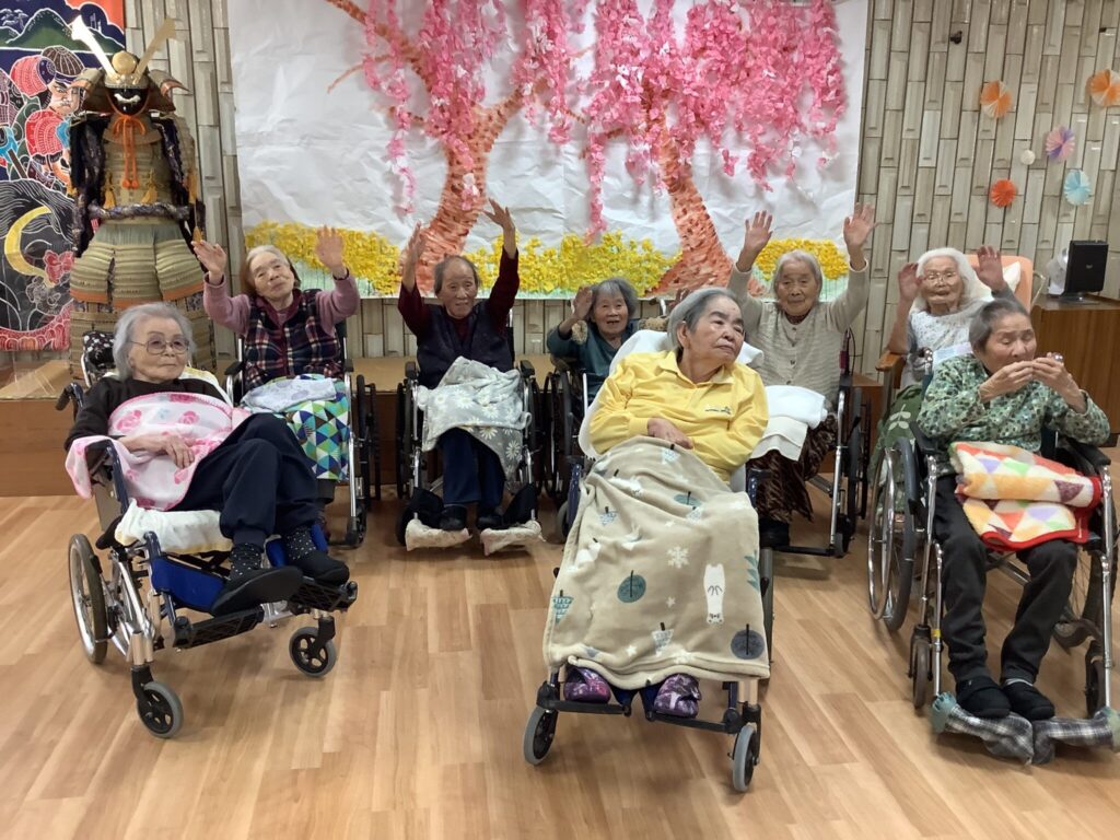 園庭は寒くて急いで室内に戻り、皆さんで記念撮影をしました。