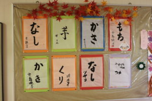 書道教室:味のある書が並びます。いつも食べ物の書が多いのはなぜでしょう??