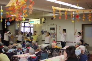 教養教室の集大成として作品を展示しヒロバンドの皆さんと一緒に器楽演奏や秋の童謡の合唱を楽しみました。年2回のミニライブには、ご家族のリーピーターも増え回を重ねる毎に会場を埋め尽くす程です。