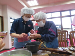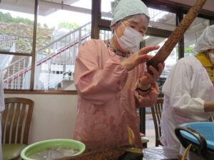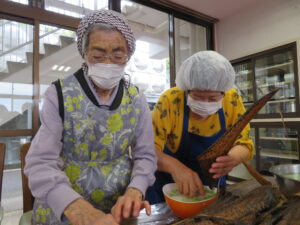 「こがんするとよー」「もち米は、あんまり詰めたらだめよー」と