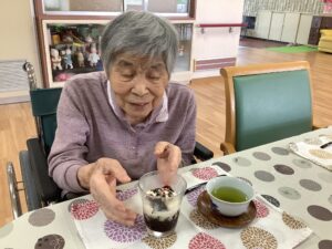 暑い日が続いていたので、おやつはコーヒーゼリーパフェを提供しました🍨