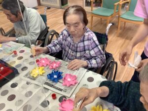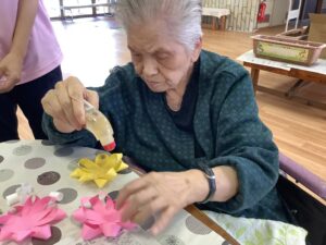 菊の花の芯を貼る作業です。お陰様であっという間に終わりました。