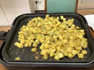 お芋を柔らかく蒸し焼きにしてお醤油、はちみつで味付けしました。