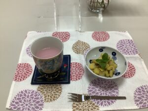 令和5年10月22日(日)本日はコロコロ大学芋とぶどうカルピスでした🍠