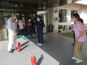 その後、火災も発生したとの想定でした。救助活動を行い初期消火を