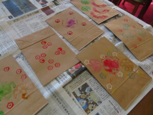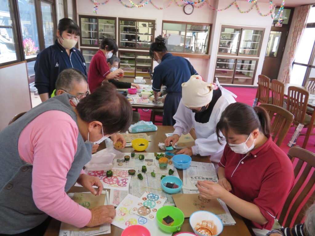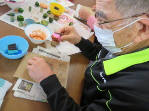 「ピーマン、レンコン、オクラ、カボチャ」を使って野菜ハンコを行いました🎵