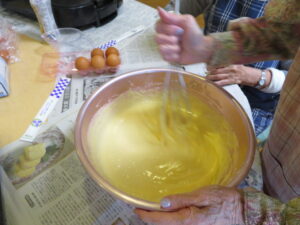 卵割り、粉入れ、生地作りのお手伝いをお願いしました🎵
