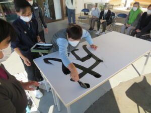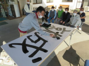 日頃から、書道で来園して指導してくださる、ボランティアの先生に指導していただき