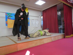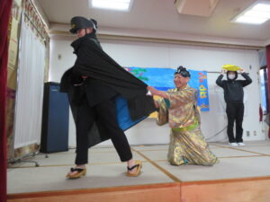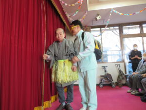 職員、入居者様によるワンシーン寸劇、「桃太郎」