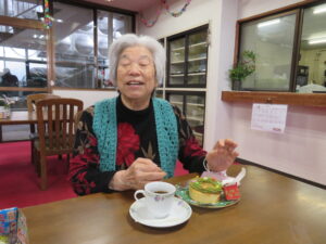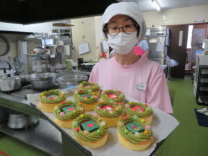 本日のお菓子は、「抹茶ポテトクリスマスリースシフォンケーキ」です🎵