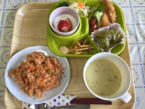 調理職員手作りの昼食です。シャンパンで乾杯をし、皆様「美味しいよ」と完食されました(*^-^*)