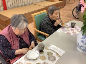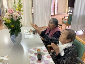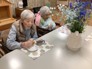 食後は温かい緑茶を飲みながら「花のきれいかねぇ」と眺めていらっしゃいました🌼