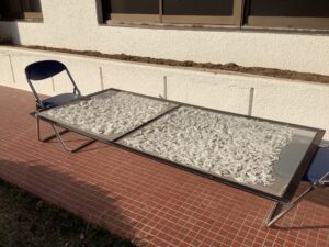 消毒の為、しばらく熱湯にくぐらせ天日に干します。