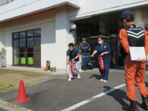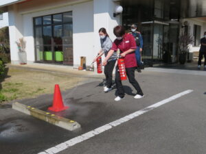 その後、職員は水消火器を用いた、初期消火訓練を行いました🎵