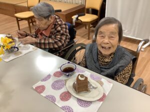 「食べていいと?嬉しかぁ」「美味しい♬」と召し上がられ、ケーキの後はコーヒーを飲みながらゆっくりとした時間を過ごしました(´▽`*)