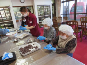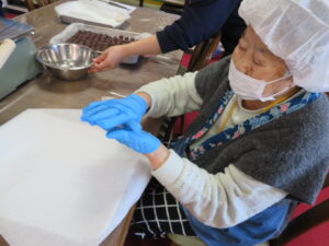 3/29(金)朝から、桜餅を皆さんと作りました🎵