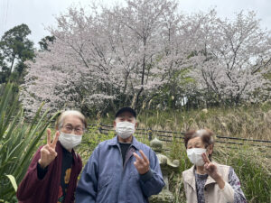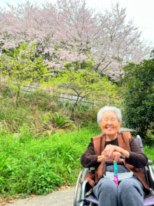 桜を見て「わぁ~!桜がみられると思わんやった~!長生きせんばね~!」