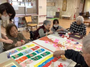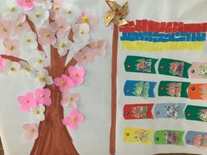 花びらやこいのぼりを張り合わせていきます。