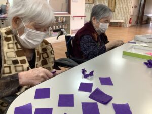 こちらは来月の準備で、紫陽花の花びらを作っているところです。