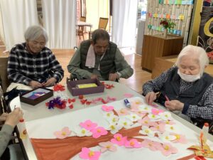 花びらやこいのぼりを張り合わせていきます。