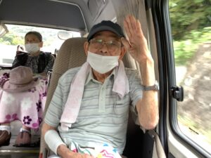 「おいしかね~」「風の気持ちよか」と、大きなぶどうを食べ、しばし休憩…😊
