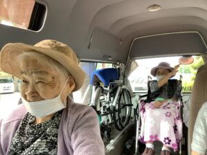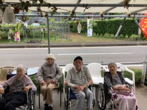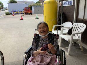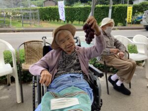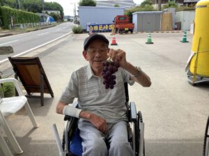 「おいしかね~」「風の気持ちよか」と、大きなぶどうを食べ、しばし休憩…😊