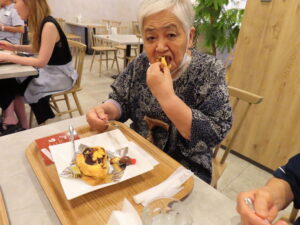 「ストレッチ体操頑張って行って良かった」「こんな大きなシュークリーム初めて食べた」と