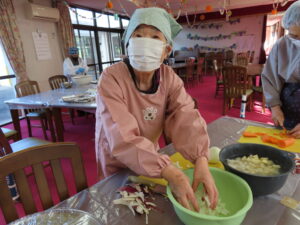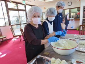 朝からは、野菜の切込み、おにぎり握りをお手伝いいただきました🎵