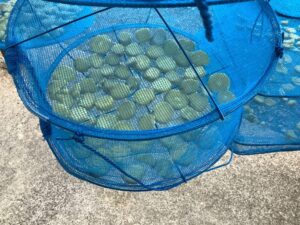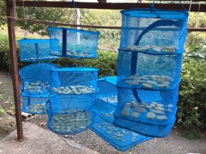 剥いた後は、芋を包丁で切り、干し網に並べていただきます😊