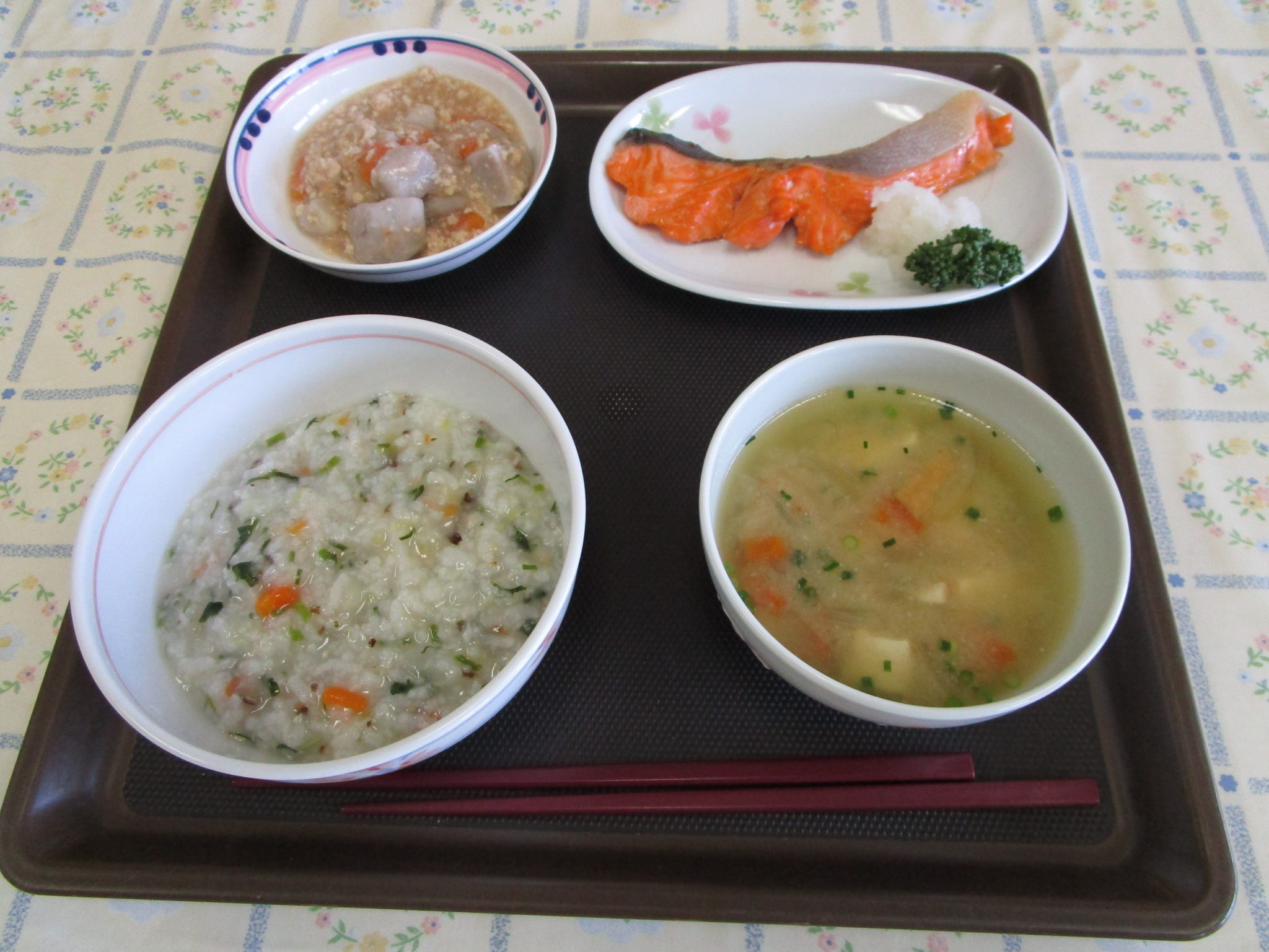 お正月に疲れた胃を休めるとともに 今年も1年元気で過ごせるようにということで 昼食は七草粥でした