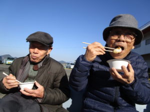 鬼火焚きの後は お餅と焼き芋を皆さん食べられ 大満足(*^▽^*)