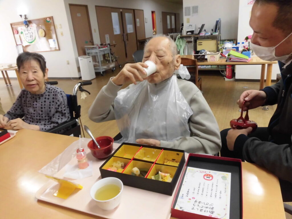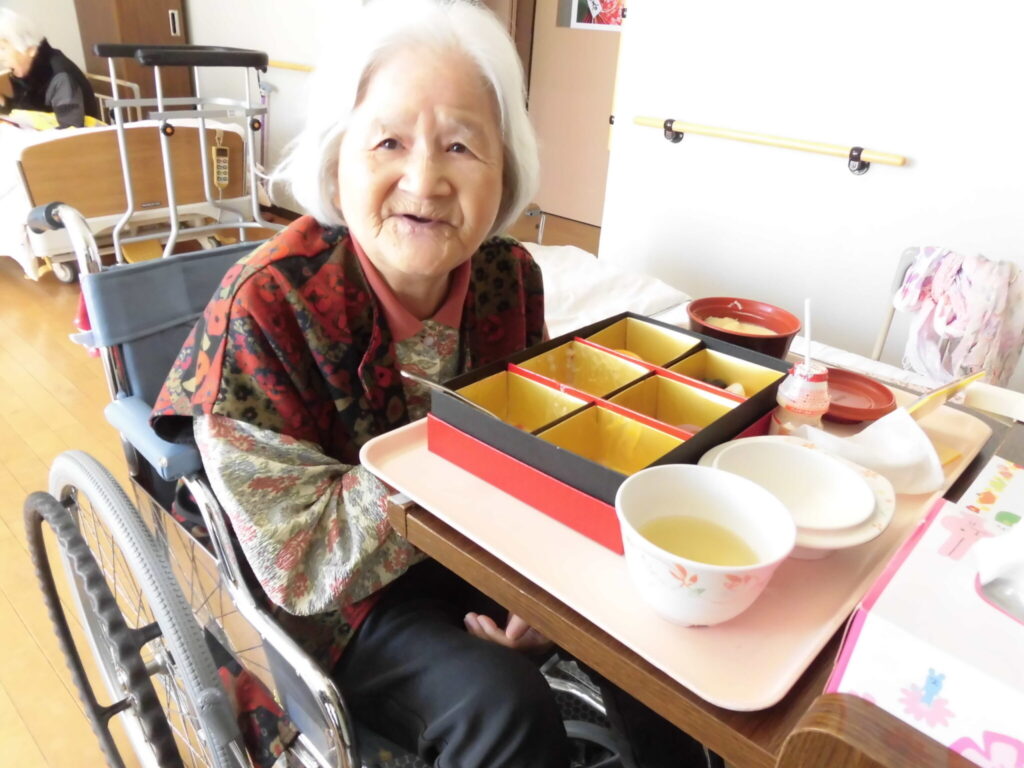 感染症拡大防止のため今年は各居室でのおせち料理のご提供となりました🌸