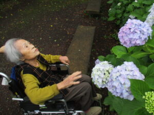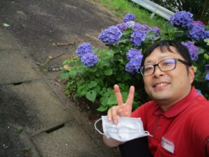 施設長もあじさいとにっこり2ショット✨