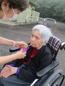 脱水予防に水分もしっかりとって、無事、施設に到着することが出来ました!