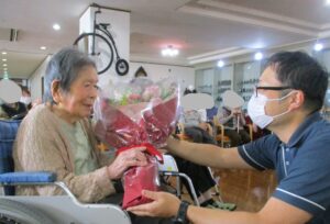 施設長より、ご長寿のお二人に花束をお送りしました🌼✨