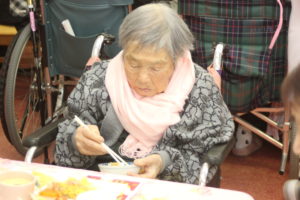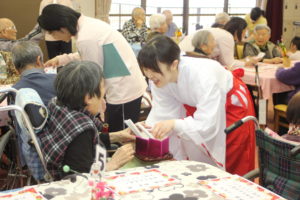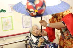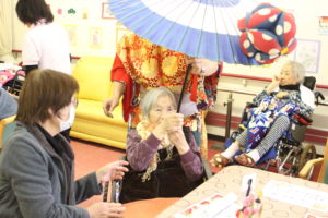 くじゃくの家OBの宮崎様 小串郷自治会の田崎様による祝舞とお話に皆様大満足(#^^#)