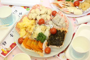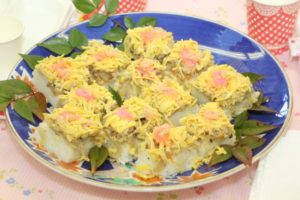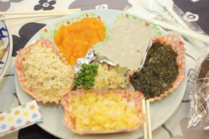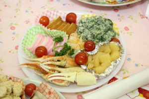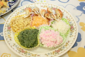 最後は皆さんお楽しみの食事!! 今回も手作りで“押しずし”と“オードブル”を準備しました