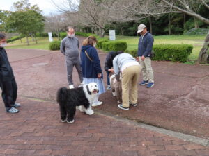 丁度お散歩に来ていた、大きな犬を触らせていただきました🎵