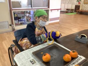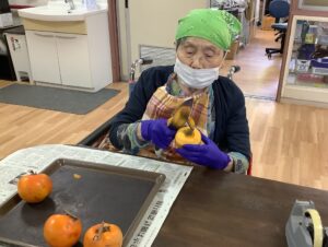 くじゃくの家の柿の木が今年はたいへん豊作で、100個以上も収穫することが出来ました🌳✂️